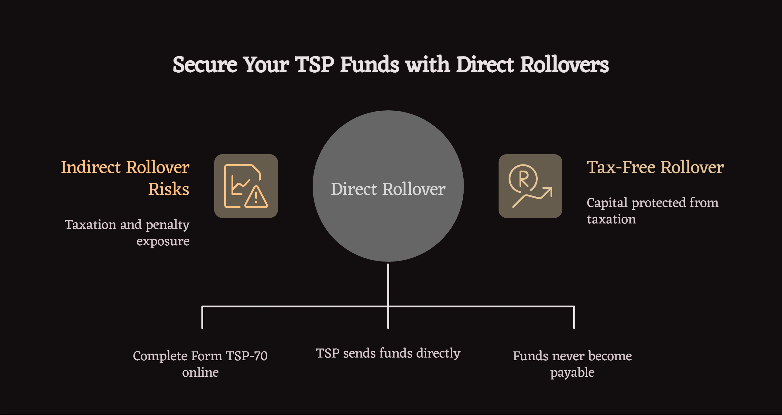The distinction between direct and indirect rollovers is not about investment choice, but about execution risk. Understanding how withholding, deadlines, and IRS treatment differ allows federal employees to preserve retirement capital during transitions. Direct rollovers eliminate the risks inherent in indirect transfers—mandatory withholding, strict deadlines, and potential penalties—making them the appropriate choice for most federal retirees protecting decades of service contributions.
