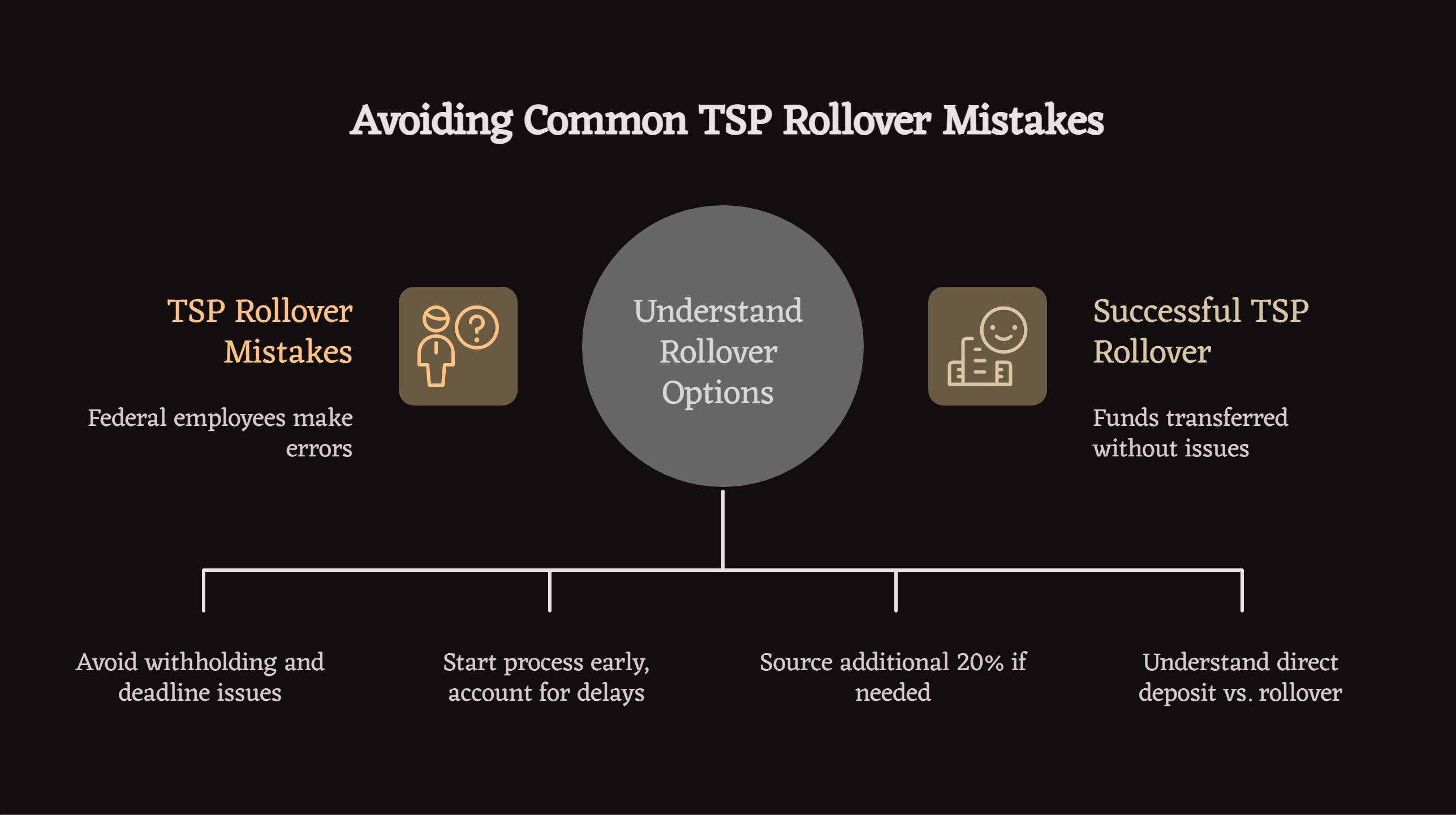 Federal employees often calculate rollover amounts based on their account balances without considering mandatory withholding. Discovering you need to source an additional 20% after the distribution arrives creates immediate financial stress.